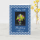 Grußkarte für Mama's 75. Geburtstag mit Spitzen-Rahmen und Foto einer Vase machen gelbe Blumen auf blauem Hintergrund. Personalisieren Sie Ihre Nachricht! Tarjeta postalisch en ingles una foto de un ramo de flores para el 75 cumples de uma mama! Personalisieren Sie su mensaje! (puede replazar el texto). Fotografie von Maria Santos (Lusinhas do Sul)