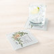 Korallenpfirsichfarben Blume, Bogen und Initialen Danke Frühling Hochzeitsglas-Untersetzer. Dieses schöne Hochzeitsdesign besticht durch einen Bogenrahmen mit Pfirsichkakteen, Blume und Blätter an der links Ecke und Ihren Initialen. Die Namen sind in Skripttypografie.