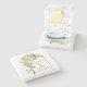 Peach Korallen Aquarellblumen, Bogen und Initialen Frühling Hochzeitscoaster. Dieses schöne Hochzeitsdesign besticht durch einen Bogenrahmen mit Pfirsichblumen und Blättern in der linken Ecke und Ihren Initialen. Die Namen sind in Skripttypografie.