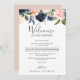 Diese Blume sind für eine Blumenhochzeit geeignet. Das klassische und elegante Design besticht durch moderne Aquarellblau- und Rosa-Blume. Auf der Vorderseite der Karte befindet sich ein Begrüßungsschreiben, auf der Rückseite der Karte befindet sich der Hochzeitstag. Diese Noten sind ideal für Hochzeiten in Urlaubsort und Begrüßungstaschen für Hotelgäste.