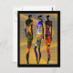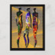 Die Postkarte der afrikanischen Wüste ist eine stilvolle Mischung aus Mode und Kunst. Mit drei elegant gestellten weiblichen Silhouetten in leuchtenden, geometrischen Pastellmustern vereint das Design moderne Ästhetik mit Wüstenlandschaft. Die kühnen Farben und die elegante Komposition machen es zu einem auffälligen und raffinierten Stück, das perfekt für Sammler oder Bewunderer zeitgenössischer afrikanisch inspirierter Kunst ist.