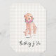 Aquareller Hundedesign in gedämpften Farben, rosa Blume rund um den Hals, weißer Gingham Hintergrund mit individuellem Denken über Dich in grau. Sweet Grußkarte für JEDEN Menschen, Pet Lover, Hund Lover, Golden Doodle Human, nachdenklicher Gruß. Süß, farbenfroh, zeitlos. Mix und Match komplette Pet Lover / Pets Kollektionen von TMCdesigns.