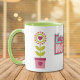 Diese helle, farbenfrohe und fröhliche Tasse ist ein wunderbares Geschenk für jede Mutter am Muttertag! Auf beiden Seiten der Tasse befindet sich ein rosa, herzhaft dekoriertes Gefäß mit einer grünen und rosa Blume. Das Zentrum der Blume ist ein Herz. In der Mitte der beiden Blume Bilder ist stilisiert Text in Rosa und aquamarin, dass sagt "Happy Mütter Tag". Sieht gut aus wie eine zweifarbige Tasse in den verschiedenen Farben oder als eine weiße. Fügen Sie die Schokoladenküche-Option für eine komplette Geschenkidee hinzu!