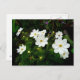 Ein Foto von weißen Kosmos-Blume, die wie ein kleiner Sternenkosmos inmitten der Blätter aussehen.