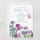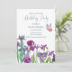 Iris Blume Geburtstagsparty Einladung mit blauem Text und Aquarell