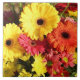 Gelb, Rot, Orange, Grün Türkis Chrysanthemum / Gerbera / Gerberum Daisy Blume Dekorative Keramik Tile / Fliesen zu Ihrem Zuhause / Büro / Business Dekor Sammlung hinzuzufügen. Ein cooles Geschenk / Geschenkidee für alle, die Liebe maßgeschneiderte Design-Objekte, positive Farbtöne, florale Bio Thema, Pflanze, Natur, Erde, Gartenarbeit etc.