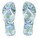 Die Flip Flops dieser Frauen haben ein blaues Hydrangea-Wasserfarbmuster.