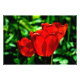 Gruppe von drei Tulpenroten Blume vor grünem sonnigen Hintergrund. Texturierte stilisierte Fotografie.