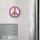 Ein Retro-Friedenssymbol / ein Kühlschrankmagnet mit gefärbte Krawatte und farbenfrohen Blume darüber. Ein buntes, mädchenhaftes Design für stolze Hippies / Liebhaber des Weltfriedens. Rosa Hintergrundfarbe ist anpassbar.