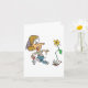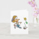 Eine Frau bekam einen Fehler von einer Blume. Dieses Design sieht auf dieser Grußkarte wirklich effektiv aus