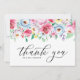 Vielen Dank mit dieser femininen und eleganten Blumenkarte. Es verfügt über pastellrosa und blaue Aquarellgarage mit blühenden Schriften. Personalisieren Sie diese, indem Sie Namen und Nachrichten hinzufügen. Diese farbenfrohen pastellfarbenen Blume bedanken sich bei der Postkarte für besondere Anlässe wie Hochzeiten und persönliche Karten.