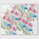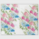 Blütenrosa und blaue Blumen mit schlängelgrünen Blätter in Aquarelltechnik, handbemalt.