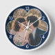 Dieses prächtige, maßgeschneiderte Wanduhrdesign beinhaltet Ihr personalisiertes Foto in der Mitte in Form einer 6-Blatt-Blume. Laden Sie ein Foto beliebiger Form hoch und es füllt automatisch den Blumenrahmen. Die Farben sind marineblau und weiß. Es ist ideal für den Valentinstag, als Hochzeitsgeschenk oder Jubiläumsgeschenk - oder für jede Zeit will man, sein LieblingsFoto zu zeigen. Um ein Bild hinzuzufügen, verwenden Sie einfach die einfache Vorlage. DESIGN TIPP: Sie können auch das Design-Tool verwenden, um die marineblaue "Hintergrundfarbe" in jede Schattierung zu verändern oder die Farbe des weißen Randes und der Uhrennummern zu ändern. Weitere lustige Fotovorlagen finden Sie hier: https://www.zazzle.com/store/picturecollage