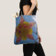 Über der Schultertasche mit Foto einer Säulenbesatztasche Blume gegen einen hellblauen Himmel. Original Fotografie von Ray Bean.