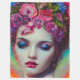 Ein wunderschönes Jugendstil-Portrait einer Frau in einem Hut aus Blume, umgeben von einer Regenbogenaura. Es wäre eine schöne Ergänzung zu einem Boudoir oder einem Mädchenzimmer.