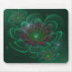Ätherische Komposition aus durchsichtigen Blume, die geheimnisvoll aussehen, und Alien auf einem intensiven und himmlisch beleuchteten grünen Ozean Hintergrund, der mit vielen Flammen, die diskret leuchten, dekoriert ist. Das Fraktal Kunstbild schlägt einen Besuch in einer anderen Realität vor. Die Blume sind transparent und hell und zeigen eine geheimnisvolle Symmetrie, die aus der Mathematik der Fraktale hervorgeht. Die Reihenfolge der Formen ist organisch präzise mit reichen Corolla aus vielen Blätterschichten, die von der Kante bis zur Mitte nah zu sein scheinen. Die Farbpalette ist originell und fett, kombiniert den grünen Ozean Hintergrund und Blätter mit lila, smaragdgrünen und hellen Linien.