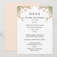 Ein romantisches Blumenarrangement mit sanften Wildblumen und Salbei-Grün verlasse an den Ecken dieses eleganten typografischen Menüs. Fügen Sie Ihre Namen, Datum und Hochzeit Dinner oder Brunch Details mit der Vorlage. Dieses elegante Design ist perfekt für jede Hochzeit oder jede Gartentheorie geeignet und passt sich perfekt in die gesamte Hochzeitssuite mit Papierartikeln für ein wunderbar abgestimmtes Thema ein. Die Rückseite des Menüs ist in einer koordinierten rosa Farbe.