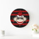 Blume-Hut aus Rot und Schwarz-Streifen Große Wanduhr