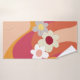 Abstraktes Retro-Design mit blühenden Blume und gelben, orangen und rosa Wellen auf pastellrosa Hintergrund
