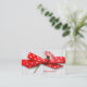 Single Blume in rotem Band gefangen mit weißen Polka Punkte auf weiß gekalktem Holz