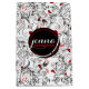 Monograviert auf Vorder- und Rückseite Schwarzweiß-Retro-Blumenmuster mit roten Akzenten