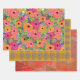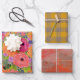 Blume, Kariert und geometrisch | Warme Farben Geschenkpapier Set