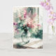 Rosa und grünes Aquarellbouquet in einem Vintagen Krug auf einem kleinen Tischdecken an einem sonnigen Fenster zum Denken