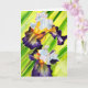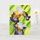 Schönes Originalgemälde von bunten lila, gelben und grünen Iris Blume. Wasserfarbene Kunst.
