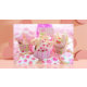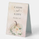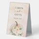 Rosa und goldene Rose, cremefarbener Kürbis und Blume. Text: Karten und Geschenke, danke!