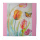 Aquarellpinke Tulip Keramik Tile. Ein glorreicher Keramik Fliesendesign. Entworfen aus meinen ursprünglichen Aquarellbildern, die ich aus meinem eigenen Blumengarten gemalt habe.