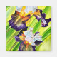 Schönes Originalgemälde von bunten lila, gelben und grünen Iris Blume. Wasserfarbene Kunst.