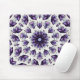 Blume mandala mousepad mit kaleidoskopischem Muster aus einer Aquarellfarbe und Tinte zeichnend einer abstrakten Lotus-Blume in blau, violett und schwarz.