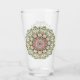 Intricate Mandala-Muster mit Blumenmotiven und Blattmotiven in Pastelltönen in Grün und Rosa. Das Design zeigt eine symmetrische Anordnung mit vom Zentrum ausstrahlenden Schichten blattähnlicher Formen. Feine Scroll-ähnliche Details bilden den äußeren Kreis und fügen Komplexität hinzu. Die Verwendung von sanften Farben und natürlichen Elementen ruft ein Gefühl von Harmonie und Balance hervor, das an Textil-Designs erinnert.