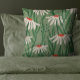 Blume Kissen mit grüner Hand ziehen. Kamille Blume in einem halbgrünen Hintergrund mit sanften, warmen Cremetönen machen dieses Dekor zu einer großartigen Wahl.