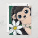 Niedliche skurrile Igel Postkarte. Ein Bild eines blau-mit Augen Igels, der eine weiße, dunkelrote Blume trägt. Erstellt aus Original-Kunstwerk © Lisa Marie Robinson. Alle Rechte vorbehalten.