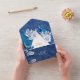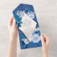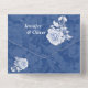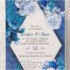 Blume mit weißer Rose auf blauem Musterpapier All In One Einladung