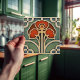 Blume Mitte des Jahrhunderts Symmetrische Kunsthan Fliese