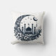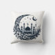 Das Bild zeigt eine Moschee, die elegant auf einem Halbmond hochragt und Frieden und Spiritualität symbolisiert. Der Halbmond ist mit feinen Blumendekorationen geschmückt, die eine künstlerische und ruhige Touch verleihen. Das gesamte Kunstwerk ist schwarz gehalten und schafft einen auffallenden Kontrast und ein Gefühl von Eleganz und Rätsel.