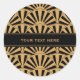 Personalisierte Deko-Fan-Blume aus Gold und Schwarz-Weiß-Technik gemustert. Das Design besteht aus einem sich wiederholenden Lüftermuster in Gold und Schwarz und einem schwarzen Band in der Mitte mit dem eigenen Text. Motiv im Gatsby-Stil der 20er Jahre.