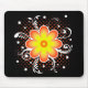 Design mit Blume und schräge Dekoration auf schwarzem Hintergrund