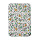 Frische Sommerfrische Blütenmatte - Blume Muster Orange Swirl Berry Design ist handgezeichnet und zeigt ein nahtlos wiederholendes Blumenmuster mit grünen Blätter und runden Orangenbeeren. Die Hauptfarben dieses Musters sind grün, orange, gelb, auf einem weißen Hintergrund.