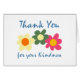 "Vielen Dank für Ihre Freundlichkeit" wird in einem zyanblau-blauen Schriftart mit drei farbigen Blume gedruckt. Klicken Sie auf "Anpassen", um die weiße Hintergrundfarbe zu ändern.