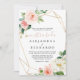 Ergänzend zu Ihrer rustikalen spanischen Hochzeit mit dieser goldenen geometrischen eleganten Fall Blume nuestra boda Einladung. Die Einrichtung besteht aus rosa, weißen Blume in Aquarelltönen mit grünen Blätter, die einen goldenen Rahmen mit geometrischen Formen zieren.