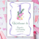 Einladungskarte zum Geburtstag mit Aquarellbild Nummer eins mit wilden Blume und lila Band.