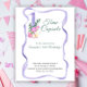 Einladungskarte zum Geburtstag mit Aquarellbild Nummer eins mit wilden Blume und lila Band.