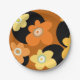 Orangefarbene, braune, gelbe Vintage Blume im Stil der 70er Jahre