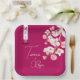 Erleben Sie die Eleganz der Natur mit unseren atemberaubenden Hochzeitsfeiern, die mit einem zarten Zweig geschmückt sind, der mit Blume auf rosa Hintergrund geschmückt ist. Ideal für ein rustikales oder botanisches Fest.