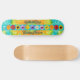 Dd Marke Skateboard, getan in einem Retro-gefärbte Krawatte-Look, mit einem aquamarinen Streifen in der Mitte, der das Board. Eine Reihe von farbenfrohen Disys wie Blume runter den aquamarinen Streifen. Personalisieren Sie die aquamarinen Textfelder, um Ihre Anforderungen zu Anzug zu bringen.