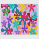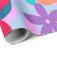 Dieses Verpackungspapier hat ein Retro-Design aus den 1970er Jahren mit überlappenden Blume in Rot, Blau, lila, Gelb, Orange und Rot. Farbenfroh, hell und lustig.