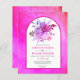 BUDGET Blume und arch magenta rosa Hochzeitseinladung mit QR-Code für UAWG. Dieses schöne Hochzeitsdesign zeigt einen Bogenrahmen auf fuchsienrosa farbenem Hintergrund. Im Rahmen gibt es ein Dalia und Rose Blume, Blätter und Pampas Gras. Auf der Rückseite ist der QR-Code für UAWG online enthalten.